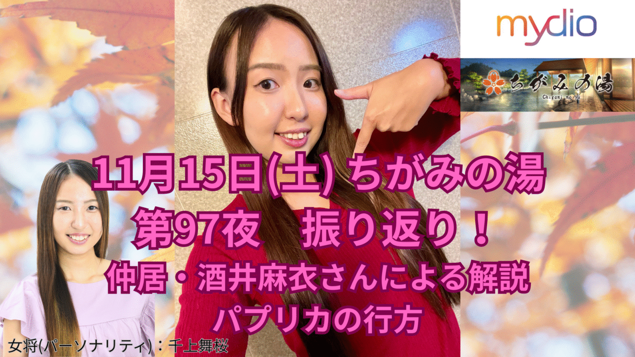【ちがみの湯】第97夜振り返り!アナリスト仲居・酒井麻衣さんによる解説。パプリカの行方。