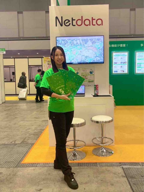3日間、西1ホールにおきまして2-P01「株式会社ネットデータ」さまのブースにてコンパニオンを担当し、マップを使用した土地探し「土地バンク」に関するご案内のお手伝いをさせていただきました。